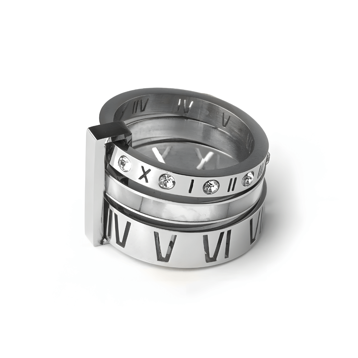 O Anel Triplo Algarismo Romano Banhado a Ouro 18k traz um visual sofisticado que combina o charme clássico dos algarismos romanos com um design triplo moderno e imponente. Uma joia que se destaca pela elegância, brilho e resistência, ideal para quem deseja unir tradição e estilo contemporâneo.